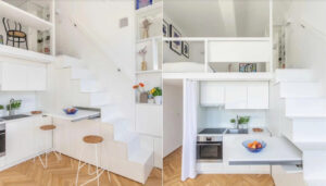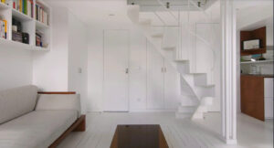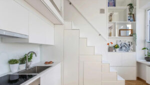 Trong các căn hộ diện tích nhỏ, cầu thang là lối di chuyển và được tận dụng để lưu trữ, lấy sáng hoặc trở thành điểm nhấn thiết kế. Với nhiều lựa chọn từ cầu thang bậc so le, dạng di động đến loại tích hợp kệ tủ, các KTS tối ưu từng m2, mang lại giải pháp phù hợp cho không gian sống hạn chế.